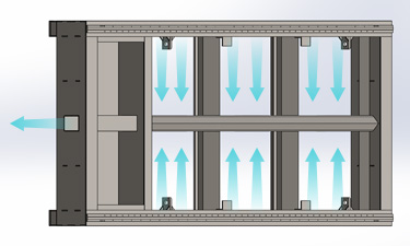 Nauti paremmasta leikkausympäristöstä osioidun savun ja pölyn poistojärjestelmämme avulla. Jokainen imuaukko avautuu ja sulkeutuu itsenäisesti tietyn alueen savun poistamiseksi, mikä parantaa huomattavasti savunpoistotehokkuutta.
