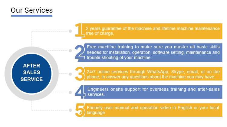 V: Toimitamme ilmaisia osia koneen takuuaikana, jos koneessa on ongelmia. Vaikka tarjoamme myös ilmaista elinikäistä myynnin jälkeistä palvelua. Joten kaikki epäilykset, kerro meille, annamme sinulle ratkaisut.